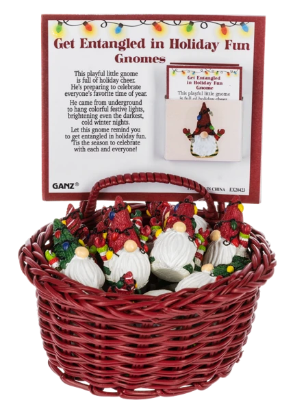 This playful little gnome is full of holiday cheer. He’s preparing to celebrate everyone’s favorite time of the year. He came from underground to hang colorful festive lights, brightening even the darkest, cold winter nights. Let this gnome remind you to get entangled in holiday fun. ‘Tis the season to celebrate with each and everyone!