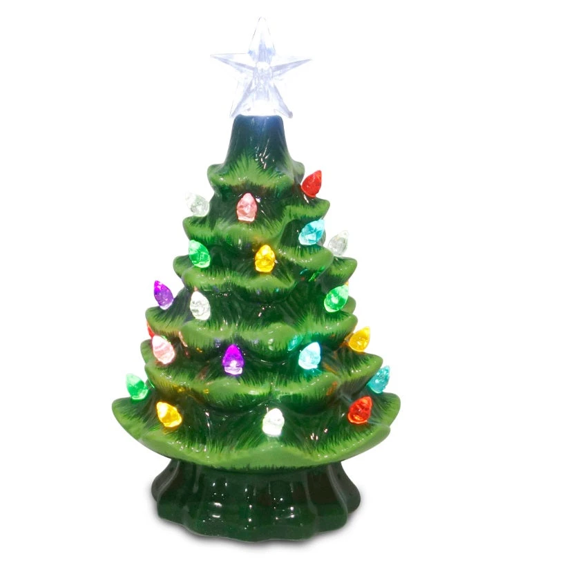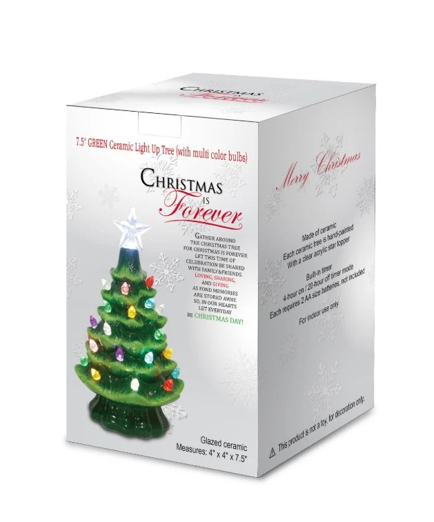This small ceramic Christmas Tree is the perfect addition to your holiday decor. It is beautifully hand-painted and finished with a smooth gloss. It will brighten your home with twinkling lights. It’s a perfect gift to evoke warm memories of holidays past and to add a little holiday cheer to any space.Â