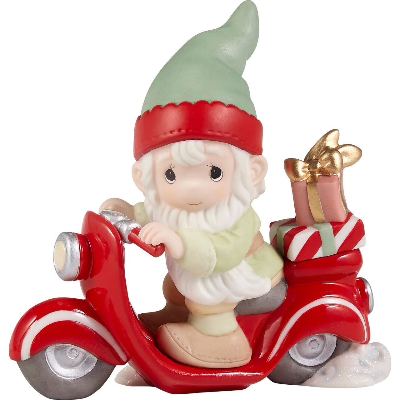 - Santa has his sleigh, but this gnome wonât be outdone on his bright red scooter. A pile of festively-wrapped packages on the back is surely going somewhere special, he just needs to make it through the snowdrifts first!