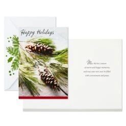 Hallmark Wreath And Pine Branch Boxed Christmas Cards With Seals, Pack Of 40