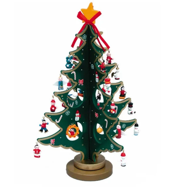 Wooden Fold Out Christmas Tree With Miniature Ornament 25-Piece Set 11.75″